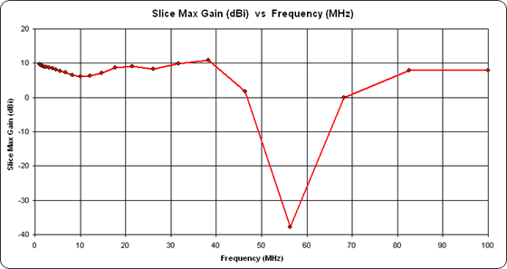 (Press Esc to stop the animation, F5 to restart.)For this example I used a Size Scale Factor of 0.75. Before making the GIF files I froze the outer ring at 7.36 dBi, the Max Gain at 28.4 MHz, so that the gain difference at each frequency step would be obvious. Use of the "Reset Marker for Each Test Case" option wasn't applicable here since the max gain was always at 0° azimuth angle. You might want to use that option for elevation slices where the angle of the max gain point varies.