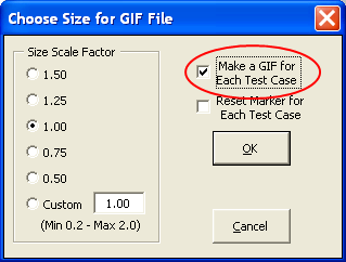 When you click OK AutoEZ will cycle through all the test cases, starting with number 1, and create a GIF for each with a sequential temporary name. The path will be whatever you used the last time you created a single GIF, so you may wish to create a single file beforehand just to pre-set the path.
