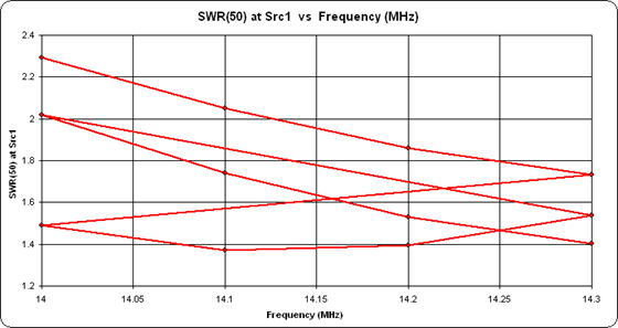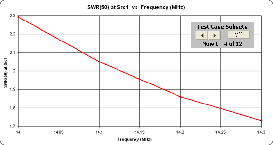 To illustrate, open good ol' BYDIPOLE.ez again and generate a series of test cases from 14 to 15 MHz.