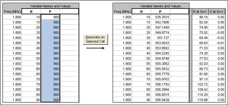 Download that file, use the AutoEZ Open Model File button to open it, tab to the Calculate sheet, select all the "P" values (cells D11-D27), and click the Resonate button. Or change all the frequencies to your new choice and set all the initial "P" values to ~1005/Freq (initial value not critical), then click Resonate. Or just set all the frequencies and "P" values as desired and click Calculate All Rows instead of Resonate.