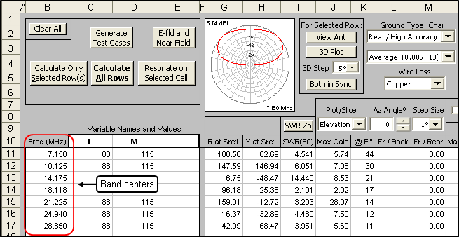 And this shows how you could keep both lengths constant while computing the results at the center of each band from 40m to 10m.