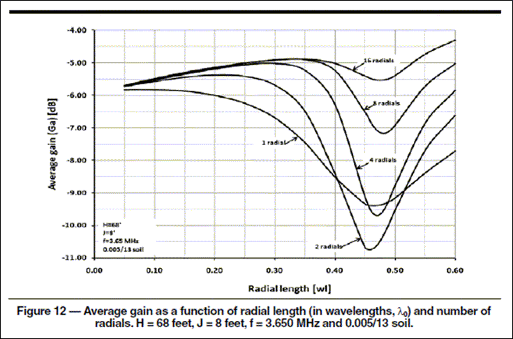 Call this Scenario 1. For Scenario 2 suppose you have room for radials that are only 100 ft long, you can only get the top of the vertical up to 80 ft, and you'll add two top wires to make a "T" for the remaining radiator length.
