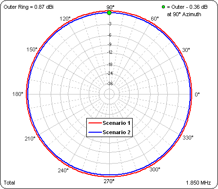 Finally, how do the two scenarios compare? Here are the azimuth patterns at 22° elevation.