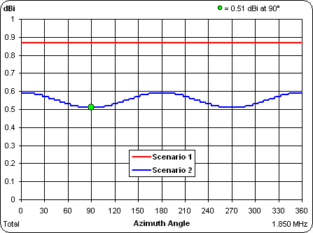It's easier to discern the small difference in gain as well as the slight asymmetry of Scenario 2 when the pattern is shown in rectangular rather than polar format.