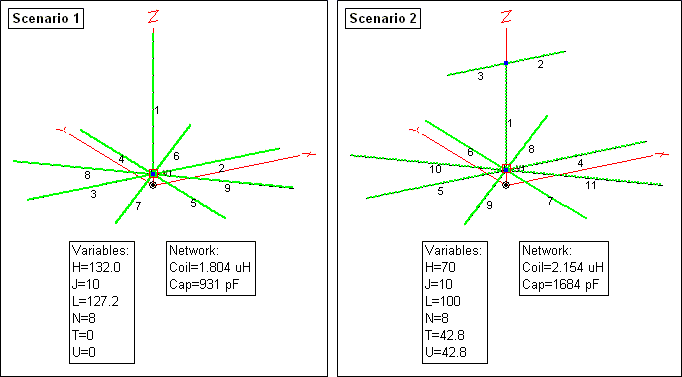 Here's what the two antennas look like. Remember, both were created from the same model file, the difference is just how the variables were set.