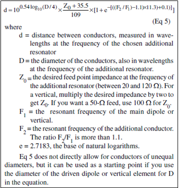 You can also use the chart shown in Fig A of the Antenna Book sidebar for spacings, but only if the second frequency F2 is in the 10m band. Remember, the spacing is based on conductor diameter in wavelengths at the frequency of the additional resonator. The Fig A chart is for an F2 frequency of 28.4 MHz.