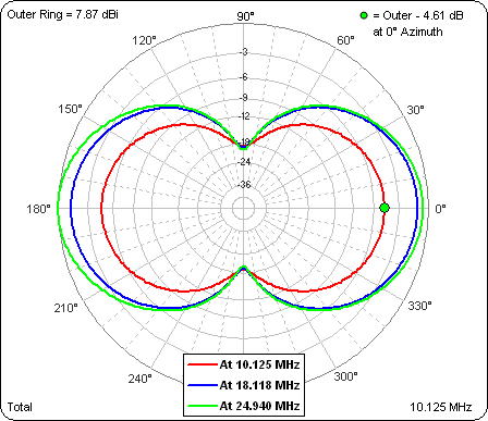 C-R dipole, similar to the example developed by K9AY except that he designed for the lower edges of each band and I designed for the band centers of 10.125, 18.118, and 24.940 MHz.