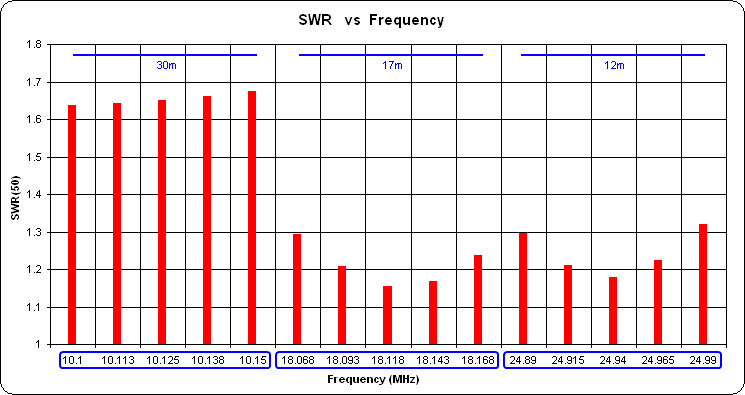 If the spacings had been fine-tuned the SWR at the 17m and 12m band centers would be at or close to 1.