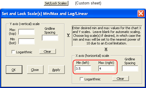 Set/Lock Scales button on the Custom chart sheet tab to "zoom in" on a particular frequency range of interest (discussed more later). This composite chart illustrates the effect.