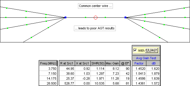 Even after correcting the source resistance and gain by the AGT values, when using a common center wire the results are still unreliable at the higher frequencies.
