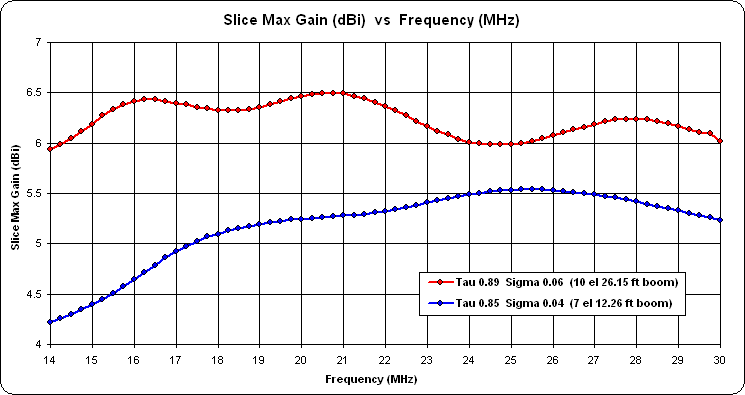 A second model file, "LPDA by Elems+Boom.weq" is similar but lets you set the desired number of elements and the boom length; tau and sigma are deduced. In both cases, by design, the models created will be very close to those produced by the popular LPCAD34 program by Roger Cox, WB0DGF.