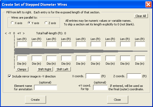 Once you have the design finalized you may be tempted to use the AutoEZ "Create Set of Stepped Diameter Wires" dialog to replace each cylindrical element with a "taper schedule" set of wires representing your proposed physical construction.