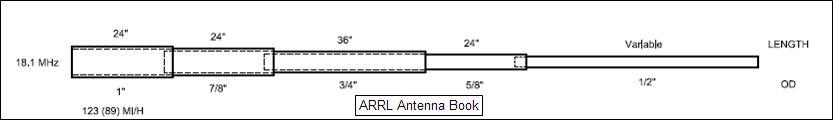 I first modeled a coupled pair of 17m/15m dipoles with stepped diameter aluminum elements. The ARRL Antenna Book gives heavy-duty and medium-duty taper schedules for 20/17/15/12/10m Yagis. I used the 17m heavy-duty one.