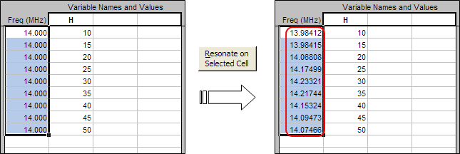 With AutoEZ the process is easier. If "H" is the variable that controls the height of your model in feet, and you want to find the resonant frequency when "H" ranges from 10 to 50 feet, set up a series of test cases all at the same initial frequency but at different heights. Then select all the frequency cells and click the Resonate button.
