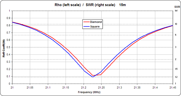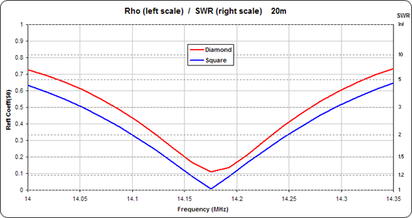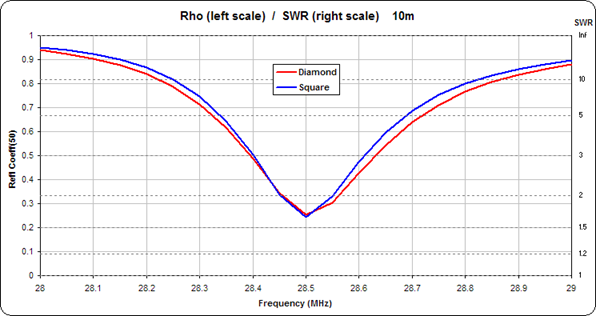 The SWR curves show a little more difference. The diamond is slightly worse on 20m, about the same on 15m, and slightly better on 10m.