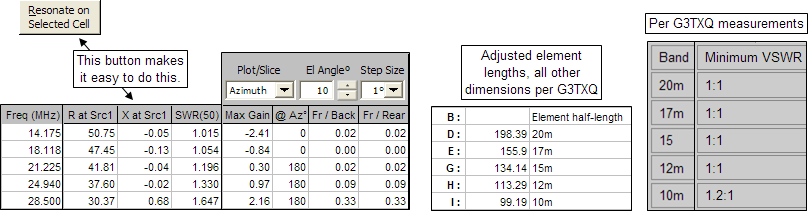 All the dimensions in the models were copied from the Spiderbeam Construction Guide v. 2.20 (available by request here) and then the AutoEZ optimizer was used to fine-tune the driven element lengths. Note that the commercial version of the Spiderbeam uses Wireman CQ-532 copper-clad steel wire