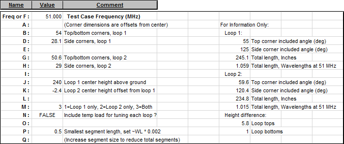 50-j50 ohms. For example, here are the variables for the quad loop model.