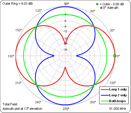 The azimuth patterns should look like this, almost perfectly omnidirectional when both loops are active.