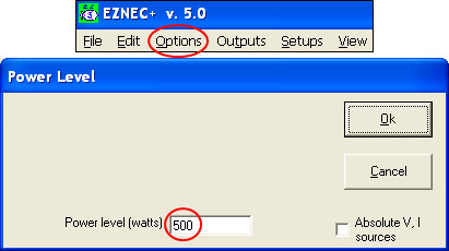 To correlate the patterns shown by AutoEZ with the raw data calculated by EZNEC you must first click the Options menu on the EZNEC main window, then Power Level, then enter the power level that was specified for AutoEZ.