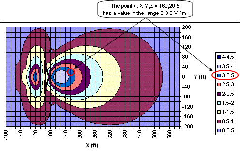 (Press Esc to stop the animation, F5 to restart.)The 3D chart gives a decent visualization of the points in space but there's no way to determine exact data values. For that you'll need to refer to the EZNEC Near Field Table. To correlate the EZNEC table with the chart you might wish to show the Top-Down view.