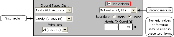 Selecting the Use 2 Media option on the Calculate sheet lets you include a second ground medium in the model.
