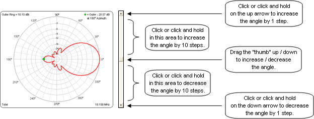 - You can click on the up arrow at the top of the scroll bar to increase the angle by 1 step, which is usually 1° if you chose a 1° plot Step Size on the Calculate sheet. If you click and hold on the up arrow the angle will continue to increase by 1 step. The down arrow at the bottom of the scroll bar works the same way to decrease the angle.