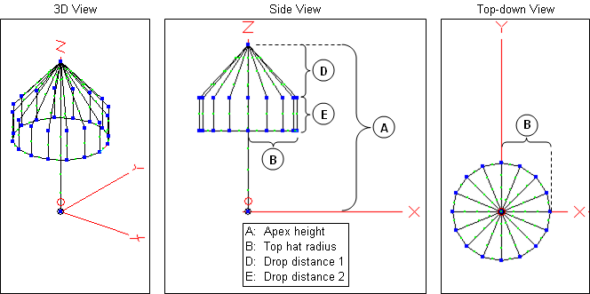 Now suppose you want to create a model such that the top hat has sloping wires and horizontal perimeter wires but without vertical wires.