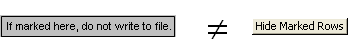 Don't confuse "marking" one or more wires with use of the Hide Marked Rows button. When you "mark" a wire it is not included in the model file that gets passed to EZNEC. There may be times when you have marked large blocks (many rows) of wires and you would like to focus your attention on only the remaining unmarked wires. In that case the Hide Marked Rows button will "make invisible" all the marked rows (marked wires) on the sheet. The rows are still there, the wires are still marked for exclusion from the EZNEC model, but they don't add visual clutter.