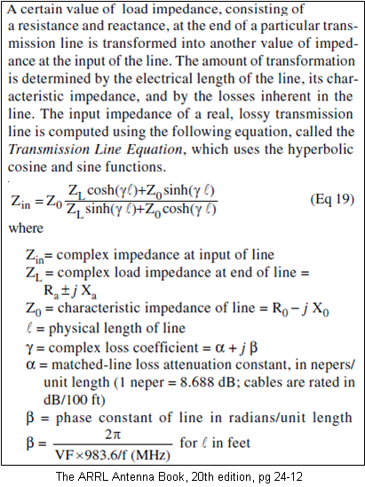 Now in all fairness we need to dig a little deeper. The discrepancy between the ARRL approximation and the more accurate calculations is due to the reactive component of the line's characteristic impedance; the Xo part of