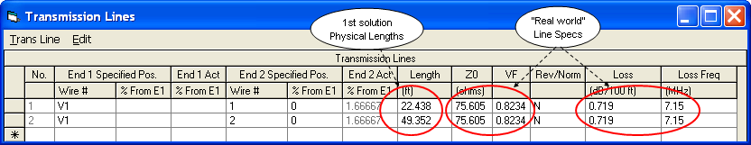 To answer those questions the first step is to modify the EZNEC transmission line specifications, as follows.