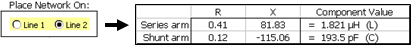 Notice that in this particular case the value of the inductor is much lower if the network is placed on line 2.