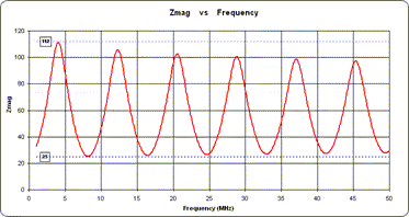 Note concerning RL: Return loss is of course a positive number. In Zplots it is plotted as a negative number merely as a convenient way to show a reverse scale, with zero at the top and higher (magnitude) values lower down. This is the typical way of plotting RL.