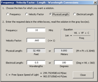 - In regions where a comma is used as the decimal point, the "Frequency - Velocity Factor - Length - Wavelength Conversions" dialog would fail or would show incorrect results.