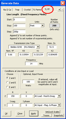 - New "TL FF" tab under "Generate Data" added to show various items associated with transmission lines along the length of the line at a fixed frequency.